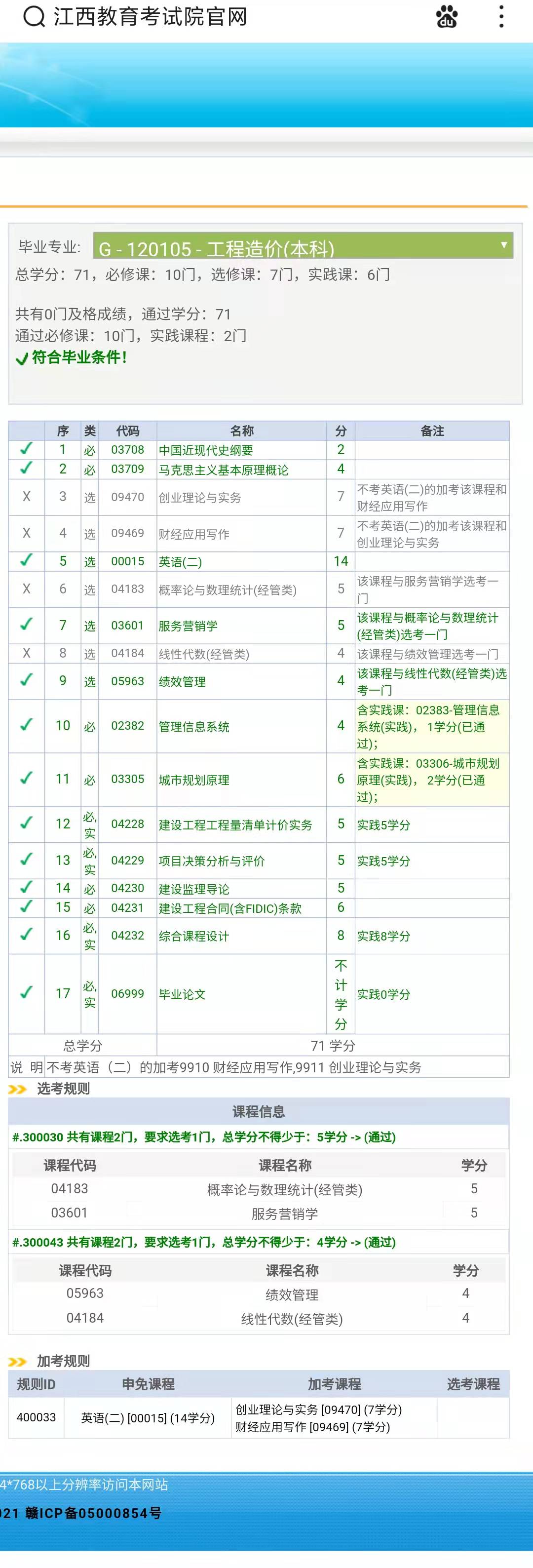 1.02383管理信息系统 2.03306城市规划原理 3.04228建设工程工程量清单计价实务★ 4.04229项目决策分析与评价★ 5.04232综合课程设计★ 6.06999毕业论文 |